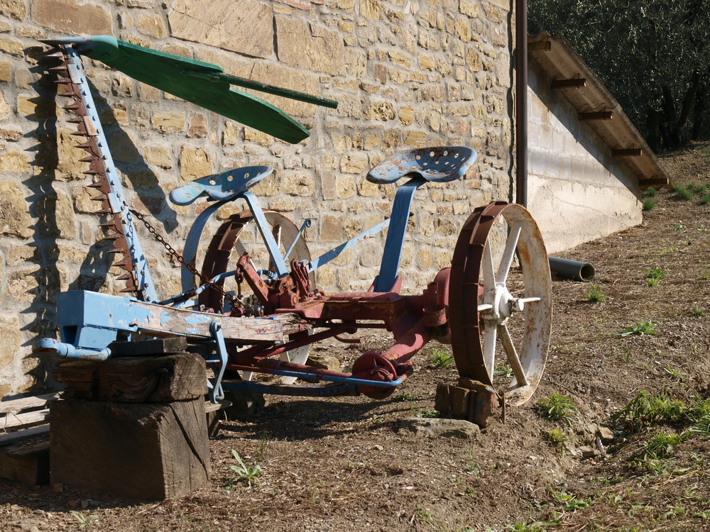Ein nostalgischer Bauer hat diesen Traktor vor sein Haus gestellt.